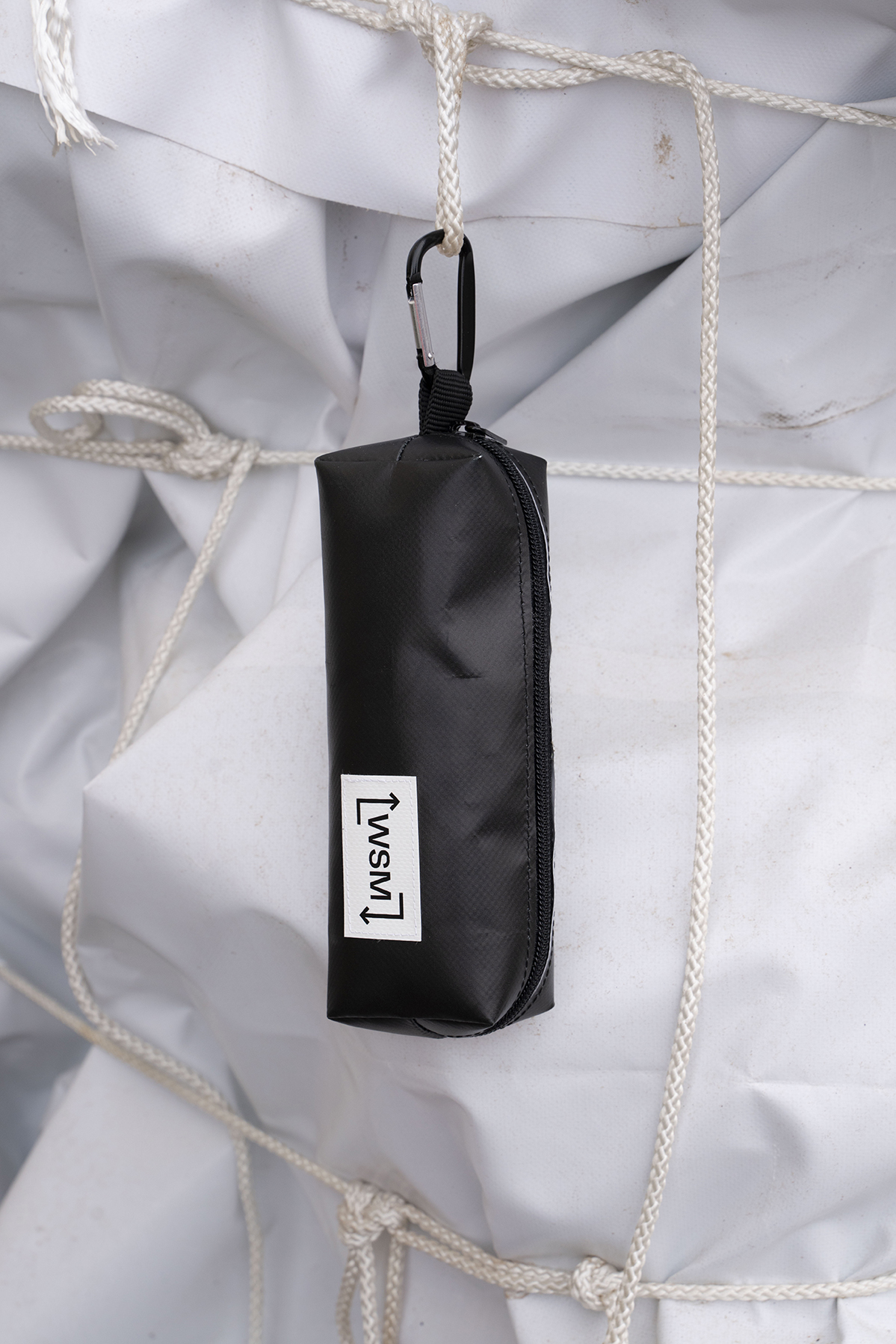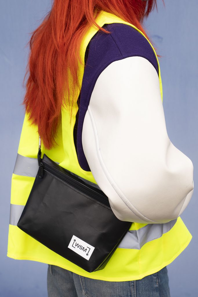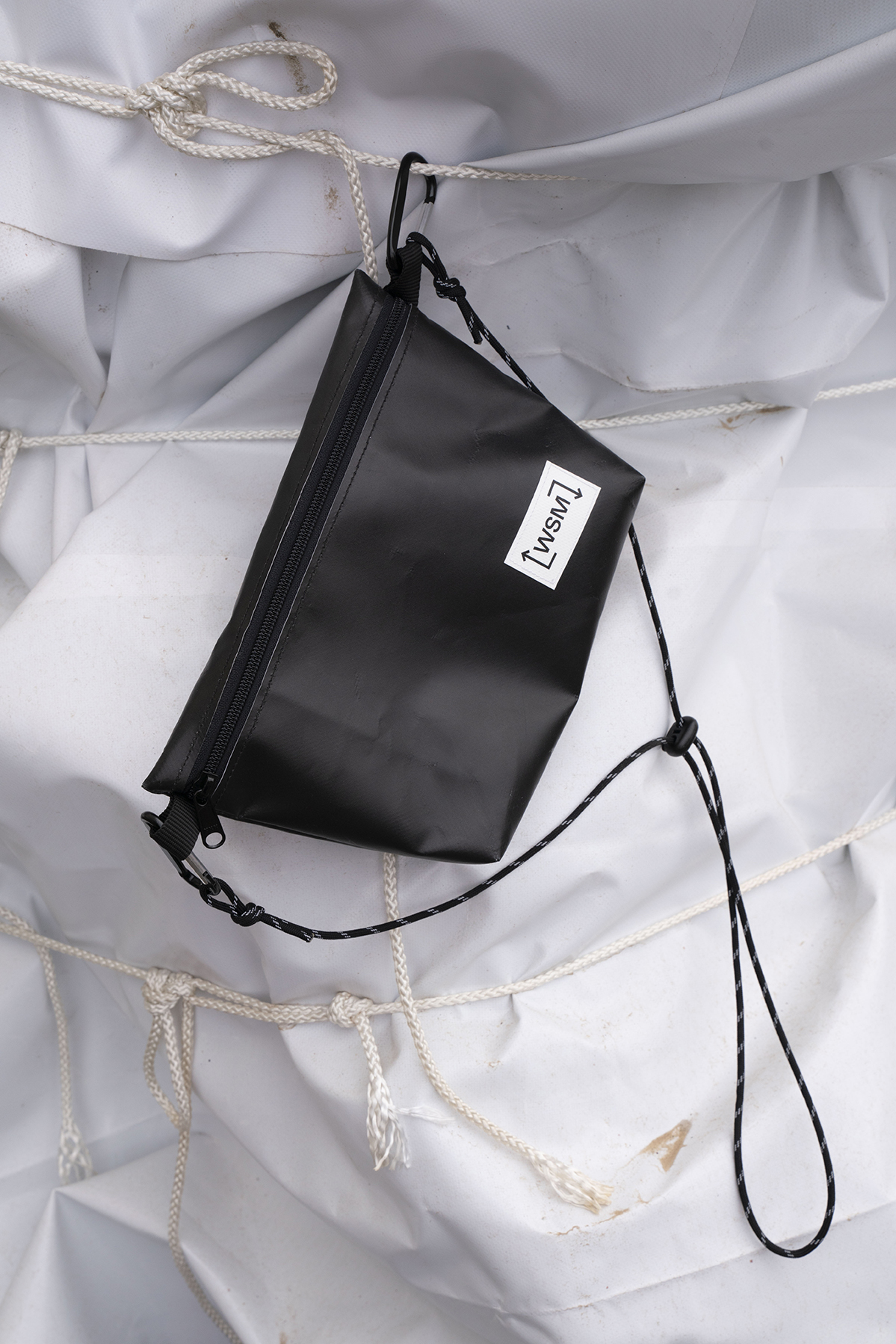 Hergestellt aus ihrem Werbeplakat, angehängten Karabinern und robusten Paracord. Viel Platz für Geldbeutel, Handy und Co. Mithilfe des Kordelstoppers lässt sich der Tragekomfort individuell anpassen.